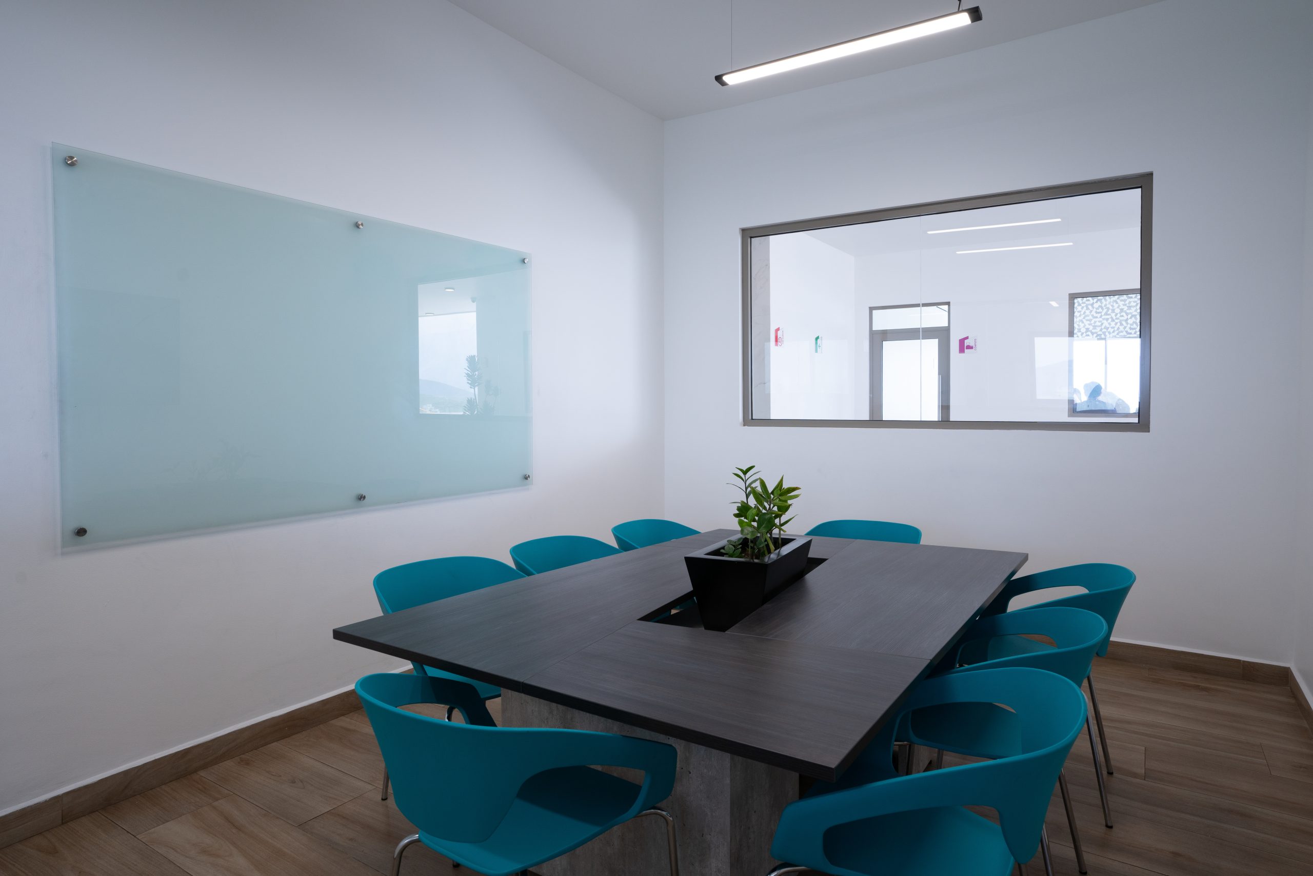Escritorio y silla dentro de cada departamento.